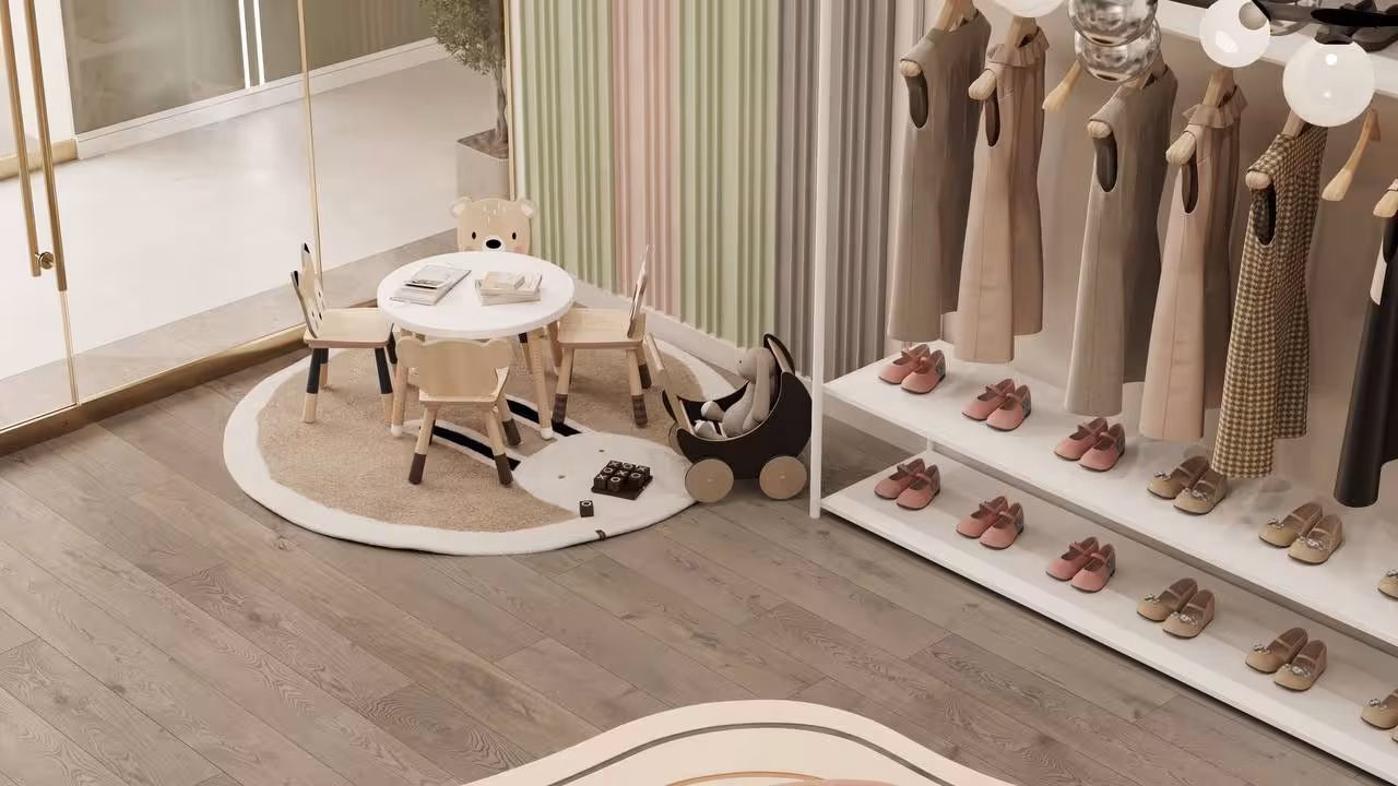 Our goal was to craft a boutique that feels equally inspiring for both children and parents. Every detail - from the custom furniture and pastel tones to the lighting composition was curated to balance creativity and comfort.